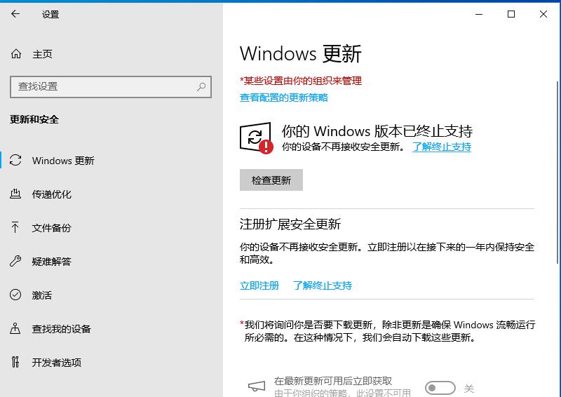 微软说明在2025.10.14之后,Windows 10 通过扩展安全更新 (ESU) 程序帮助保护您的设备安全。大意是必须绑定微软账户的系统打开支持, 获取ESU的验证,然后才能推送更新, 也可以开启.