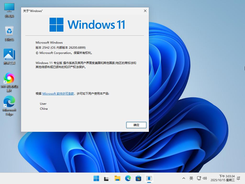 Win11.25H2 26200.6899是2025.10月更新版本, 制作精简的二合一版本仅供体验.